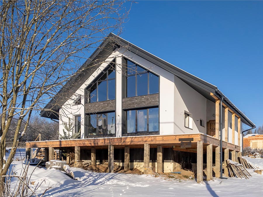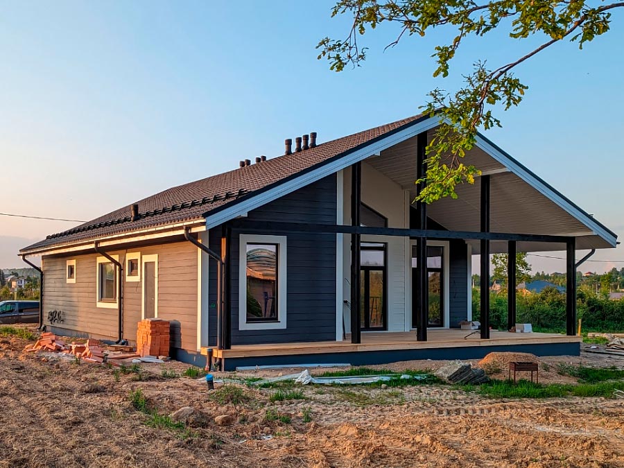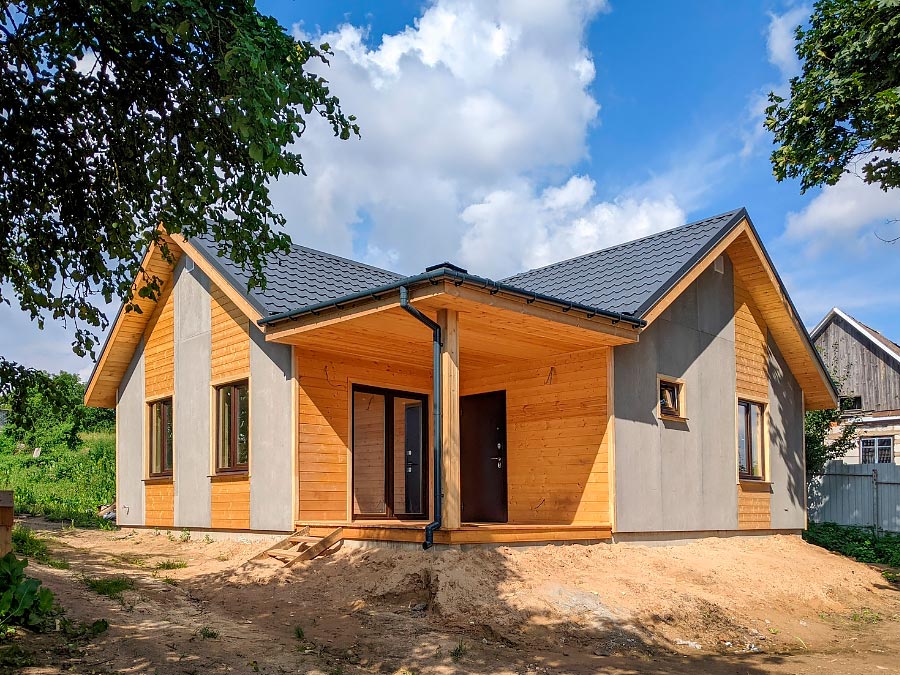 - Каркасная технология / дерево — быстровозводимая, бюджетная, позволяет хорошо утеплить стены, подходит для сухих грунтов.