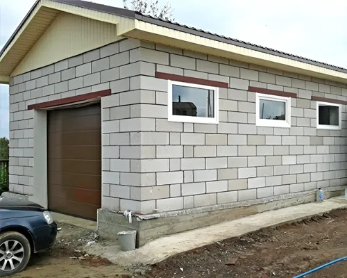 - Газосиликат / газобетон — тёплый, негорючий, легко монтировать, отлично держит тепло, подходит для отапливаемых гаражей.